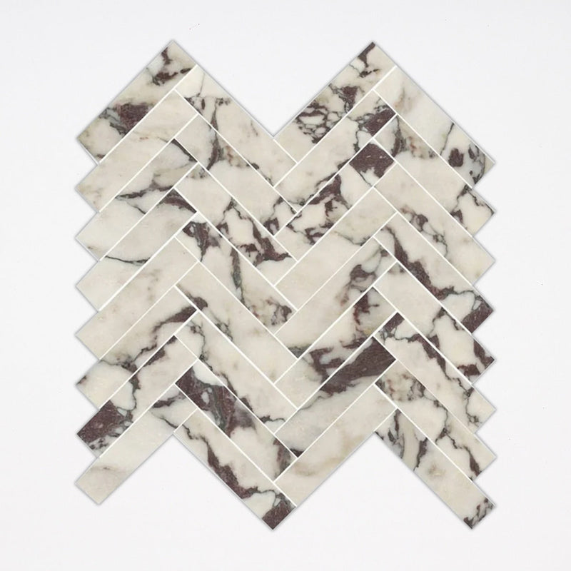Calacatta Viola Honed 1x4 Herringbone Marble Mosaic